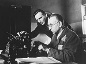 His business now acquired, Schindler was on the lookout for growth capital, and he turned to Jewish accountant Itzhak Stern for assistance on that score. It was Stern who advised him that a Jewish labour force would be cheaper than a Polish one, so Schindler used his influence to permit him to obtain a Jewish work crew. At this time, there seems little evidence of any particularly altruistic motives for Schindler. Indeed, in the face of Hitler's promises to combat communism, he may have felt even some elements of sympathy for at least aspects of the Fuehrer's cause. Certainly it appears to be mostly a practical motivation to re-establish himself in business at the lowest possible price. Given his Gestapo contacts and glowing service record to the Abwehr, he was indeed rewarded with some very attractive contracts and orders. Stern's post-war recollections of meeting Schindler were that he immediately recognised Schindler as "a good German." They struck up a fairly immediate dialogue, although both came from vastly different backgrounds. Stern recalls Schindler lamenting that it must be hard to be a priest during times like these, when life did not have "the value of a packet of cigarettes," Stern responded by reciting the Talmud: "He who saves one life, it is as if he has saved the entire world." Schindler apparently replied, "Of course, of course." However brusque and mindless this statement was on Schindler's part, to his dying day, it was, in Stern's mind, the genesis of Oskar's new life as a saviour. Schindler's point of view is somewhat more prosaic. "I knew the people who worked for me. When you know people, you have to behave towards them like human beings." |